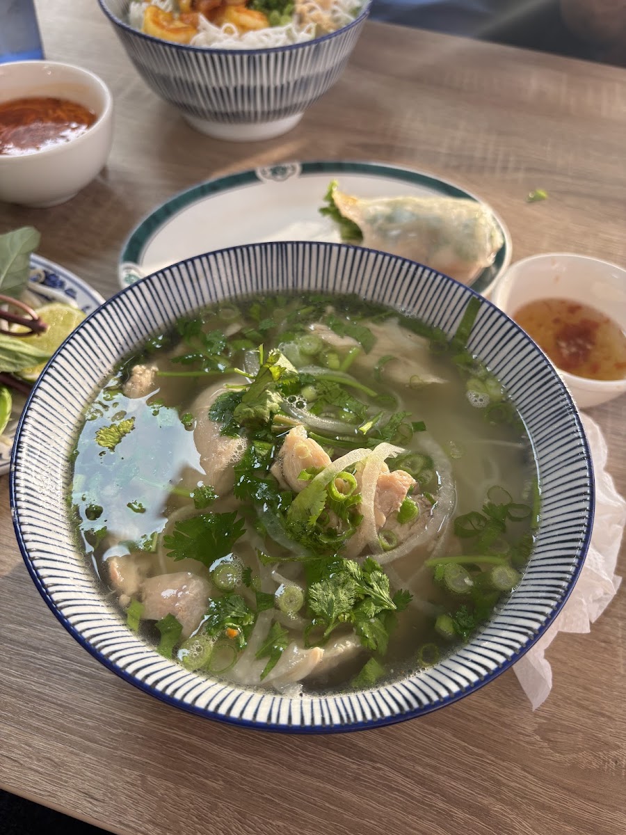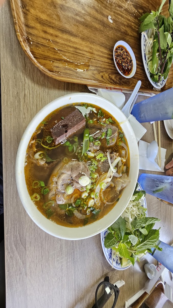 2024/5 4 guests Flavor is fine Soup is super light. Rice noodles is flat, not attractive Shrimp roll dip peanut butter is weird. But my local friends sag it is the best Pho here